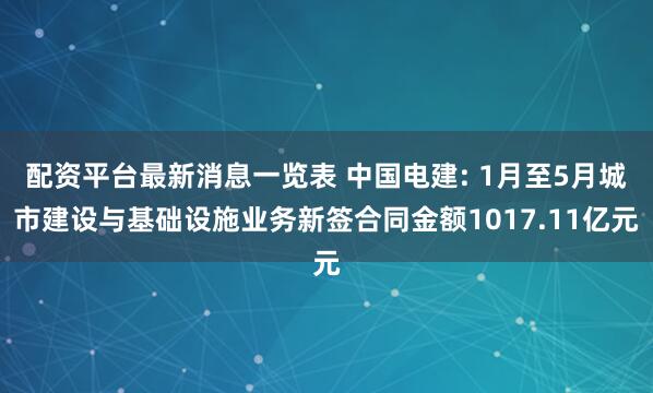 配资平台最新消息一览表 中国电建: 1月至5月城市建设与基础设施业务新签合同金额1017.11亿元